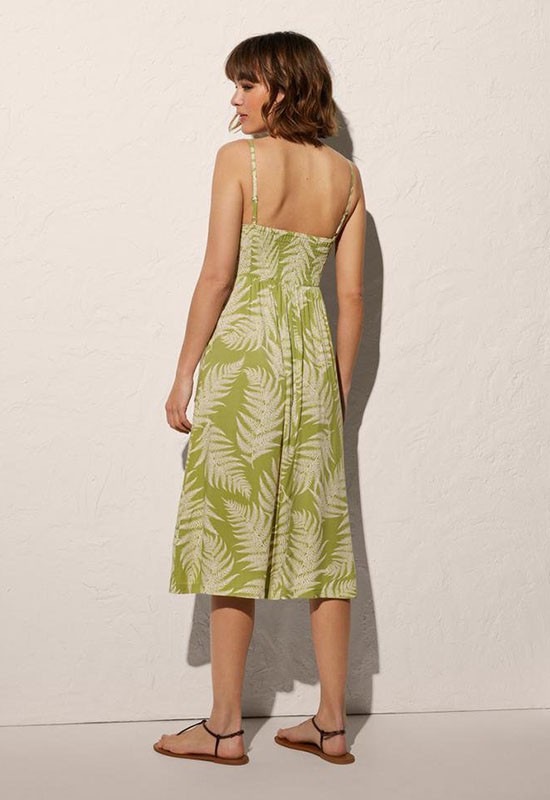 Abito lungo con top e gonna ampia con spalline sottili e regolabili per adattarsi a diverse altezze e forme. La gonna dotata di tasche laterali molto comode. L'allacciatura con bottoni dall'alto verso il basso conferisce un tocco elegante. comp: 100% viscosa