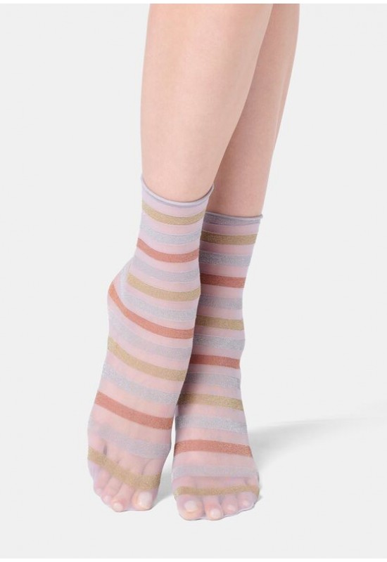 Calzini semi velati in bi-pack 30 denrealizzati con un raffinato filo lamche dona un delicato tocco luminoso a ogni outfit. Il polsino a taglio vivo assicura una vestibilitconfortevole e una linea pulita perfetta da indossare con eleganza nella quotidianito nelle occasioni speciali. Composizione motivo righe:7% elastan63% poliammide21% fibra metallizzata25% fibra metallizzata68% poliammide16% elastan