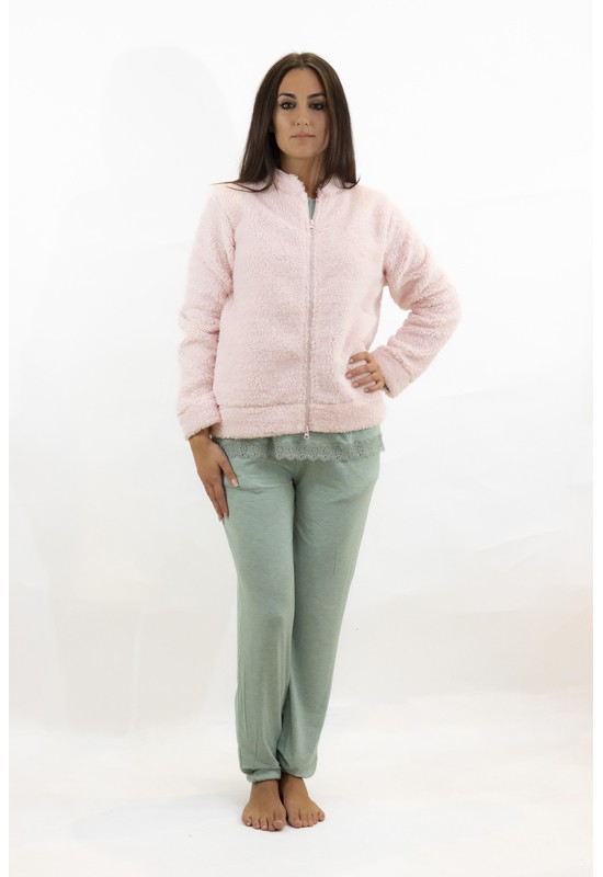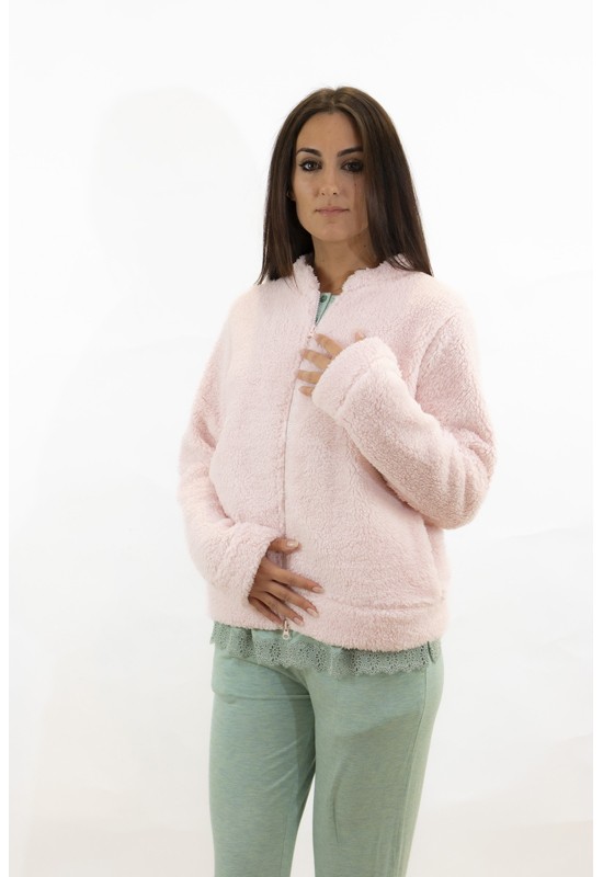 Giacca pelouche verdissima con tessuto morbido con leggeri brillantini. Chiusura con cerniera. 2 tasche sul davanti. comp: 100% poliestere