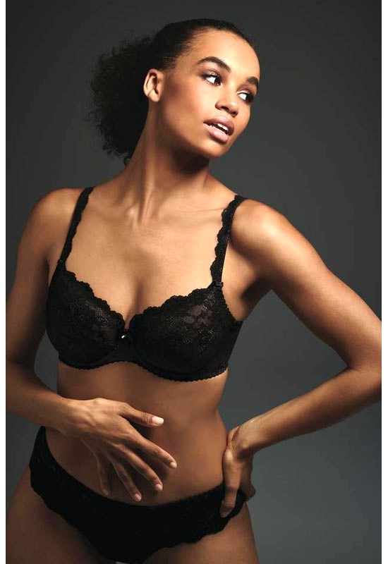 Reggiseno con ferretto in morbido pizzo elastico dal motivo floreale. Coppa tripartita rinforzata internamente con morbido tulle. Ferretto. Spallina decorata. Morbida fascia sul dolletnonchdi parte inferiore della coppa e fascetta in pizzo allover Piccolo fiocco con ciondolo decorativo che arricchisce il decolte' di questo elegante reggiseno. Tessuto esterno 76% Poliammide 13% Poliestere 11% Elastan