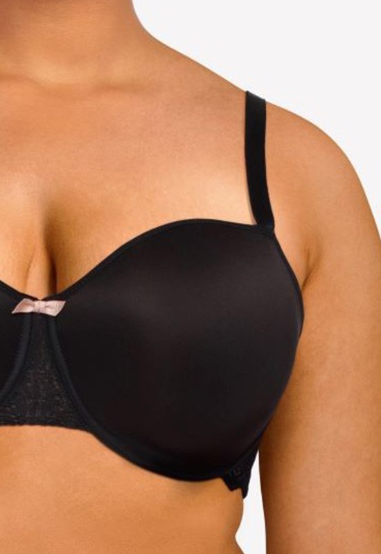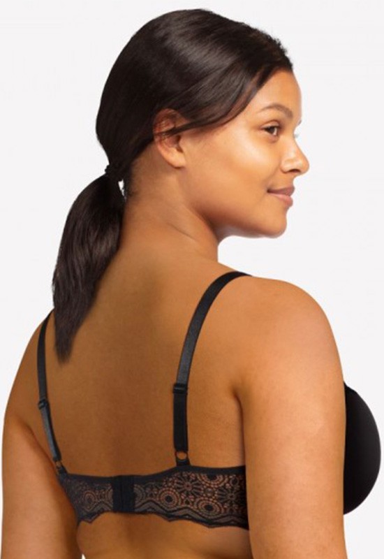 Reggiseno ultraconfortevole che assicura invisibilitsotto gli abiti.Il pizzo sul dorsale e il fiocco tra le coppe rendono adorabile questo reggiseno. Una coque memory ultra confortevole che nasconde i piccoli difetti e dona un effetto arrotondato a tutti i seni. Coppe lisce non ricoperte. Baschina centrale in pizzo grafico e piccolo fiocco a contrasto. Dorsale in pizzo grafico che avvolge delicatamente la pelle. Spalline interamente regolabili.