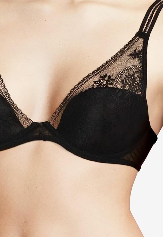 Reggiseno della linea quotidiana e seducente in pizzo floreale e tulle fantasia. Modello preformato e scollato con ferretto. Coppe lisce ricoperte da un pizzo floreale e delicato. Fiocco a cravatta all'inguine. Schiena seducente con inserti in pizzo. Effetto scollatura rivelata. COMPOSIZ: PIZZO 78% POLIAMMIDE 22% ELASTAN PIZZO SCHIENA 86% POLIAMMIDE 14% ELASTAN TULLE 100% POLIESTERE TESSUTO 100% POLIESTERE TULLE FODERA 86% POLIAMMIDE 14% ELASTAN