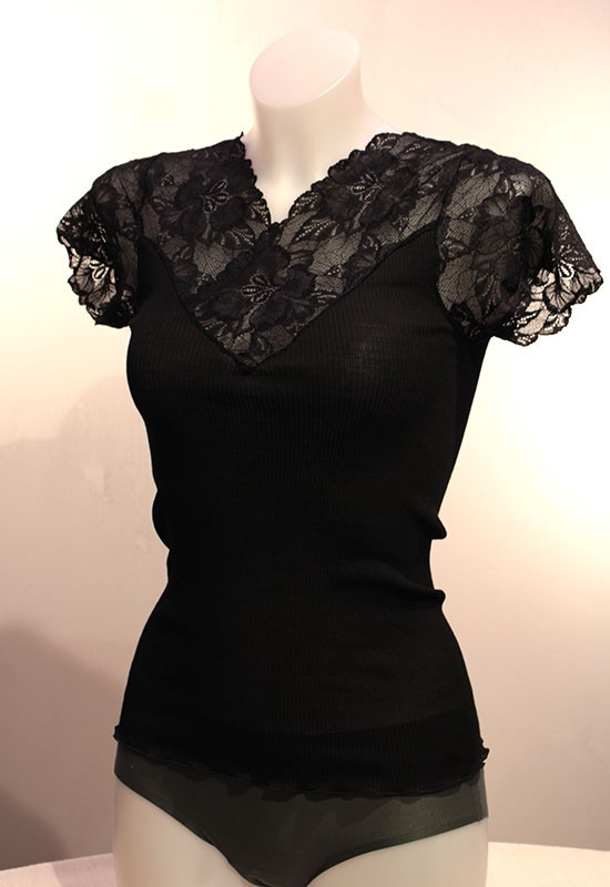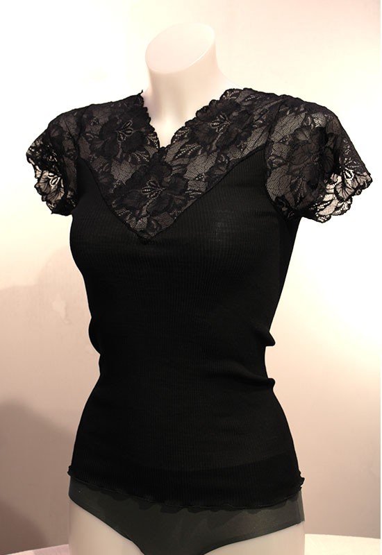Maglia MM lo scollo e le maniche sono impreziosite da un bellissimo pizzo il busto e' in lana e seta a costine per un'aderenza perfetta al corpo senza comprimere. Composizione: 85% Lana 15% seta