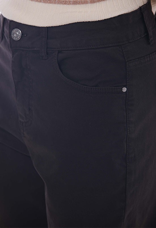 Pantalone 5 tasche tessuto elasticizzato vita regolare abbotonato sul davanti gamba dritta. Composizione: 98% cotone 2% Elastan