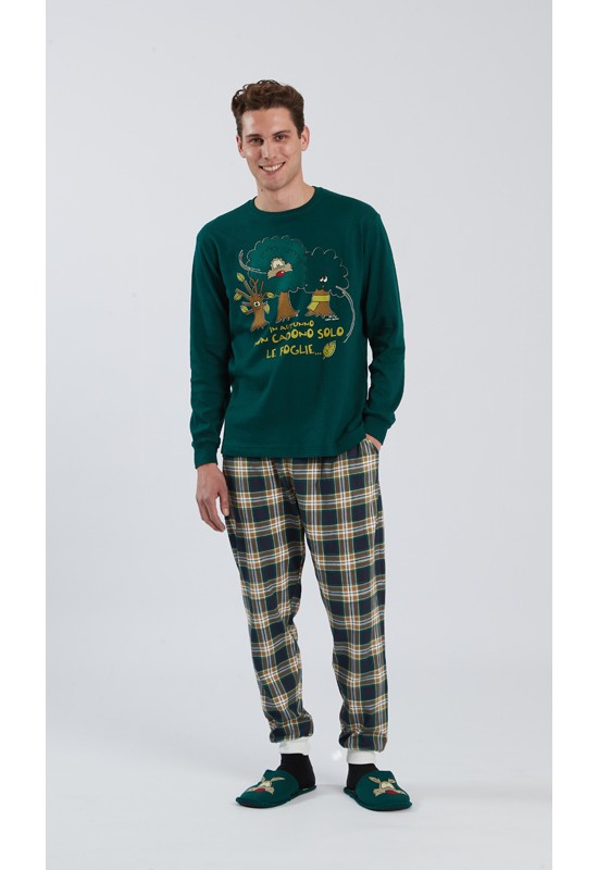 PIGIAMA GIROCOLLO UOMO COTONE PANT QUADRI E FOGLIE 6425 H.PE