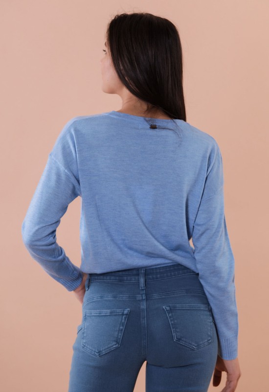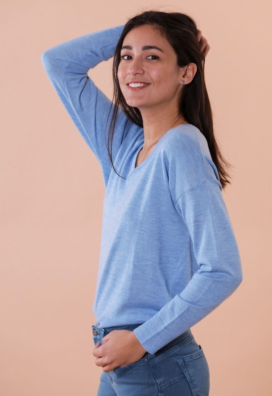 Maglia maniche lunghe scollo a v maniche lunghe con polsino. Composizione: 44% polyestere 30%acrylic 20% nylon 6% wool