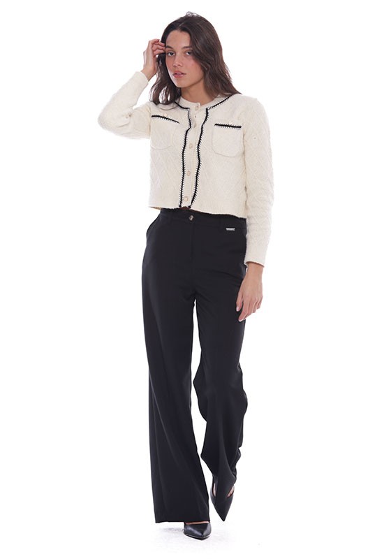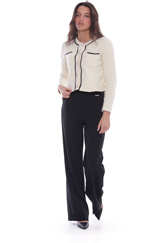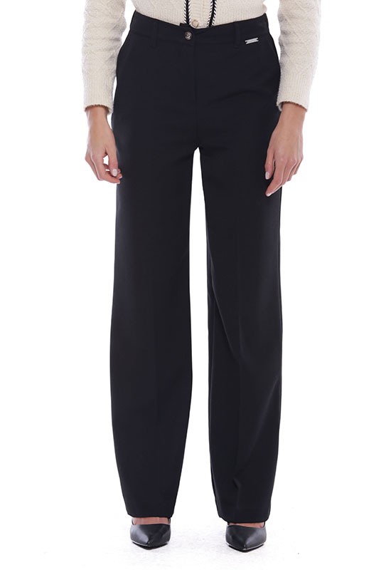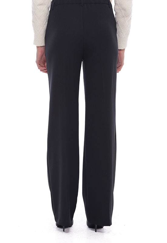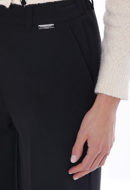Pantalone palazzo abbottonato davanti con tasche a filo increspato sul dietro: Composizione:77% PL 17% Vi 6% Elastan