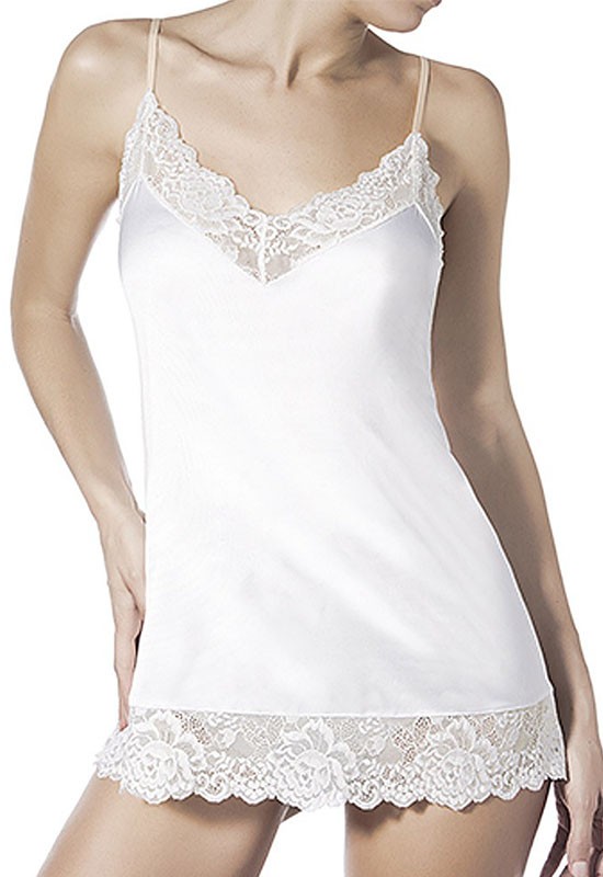 Top sottogiacca in raso elasticizzato con pizzo sul decolte' e a rifinitura sull'orlo i lacci sono regolabili ed elasticizzati. Tessuto : 71% Polyestere 20% poliammide 9% elastam