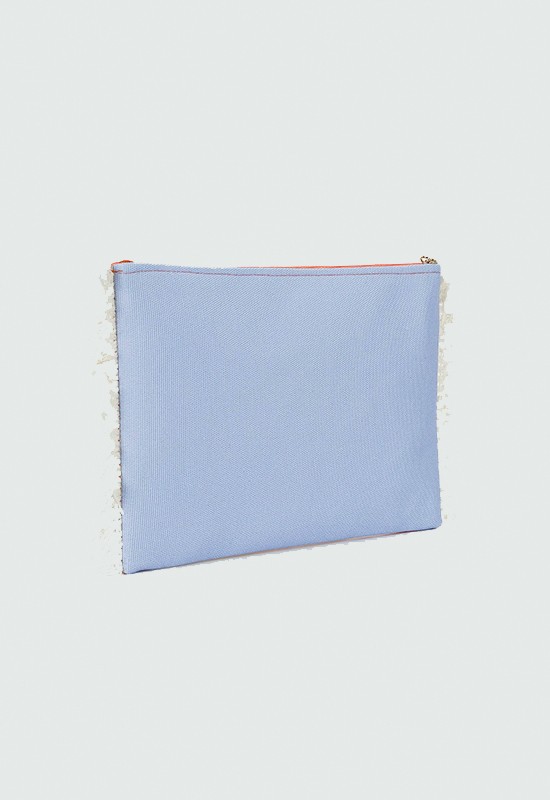 Portaoggetti VACATION THERAPY". Chiusura con cerniera. Dettagli con peneri. LUNG: 29cm PROF: 11cm ALT: 20cm COMPOSIZIONE: 100% PU - POLIURETANO"