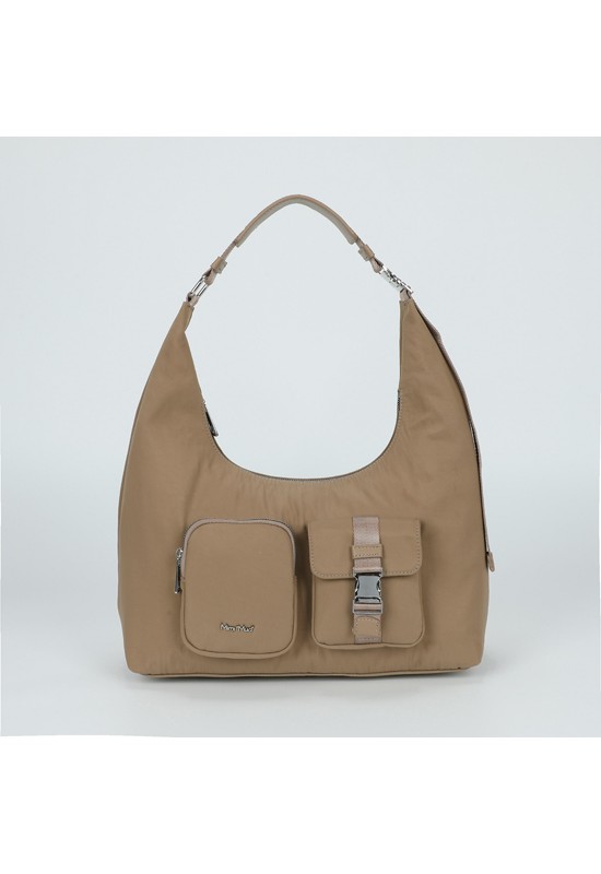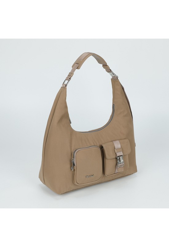 Borsa a sacca da spalla in nylon con tasche. LUNG: 37cm PROF: 13cm ALT: 35cm COMP: 5%95%NY