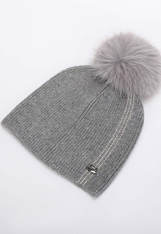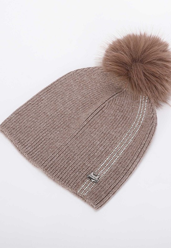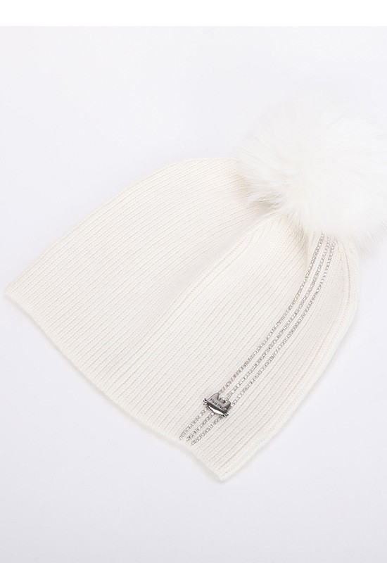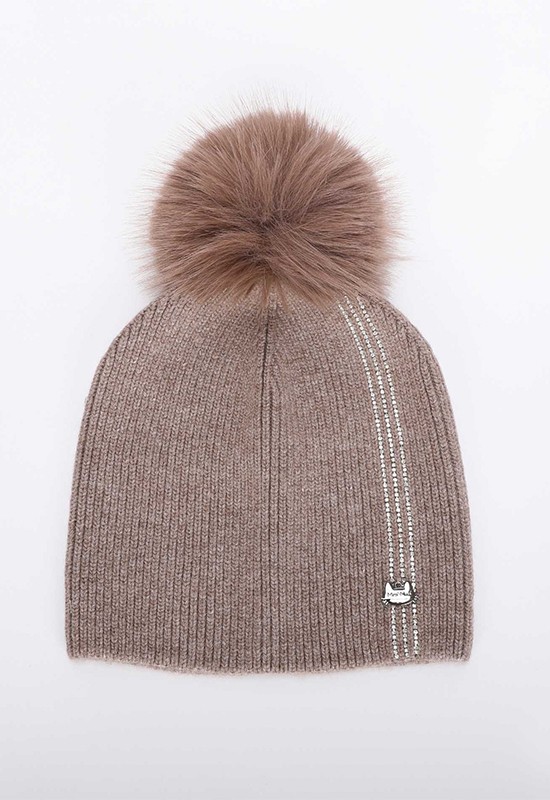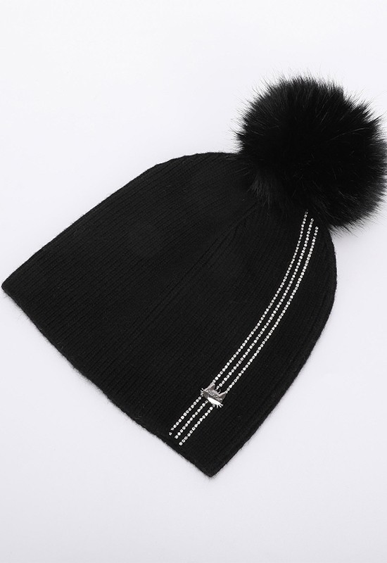 Berretto morbido e caldo con 3 strisce di strass e pon pon in ecopelliccia. COMPOSIZIONE: 62%NY 30%VI 8%WA
