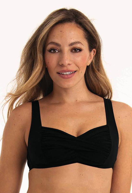 Perfetta vestibilitcon raffinate arricciature avvolgenti e un romantico scollo a cuore. Particolarmente comodo grazie alle spalline regolabili alla coppe morbide e alla speciale fodera. COMP: 73% Polyamid 27% Elastan