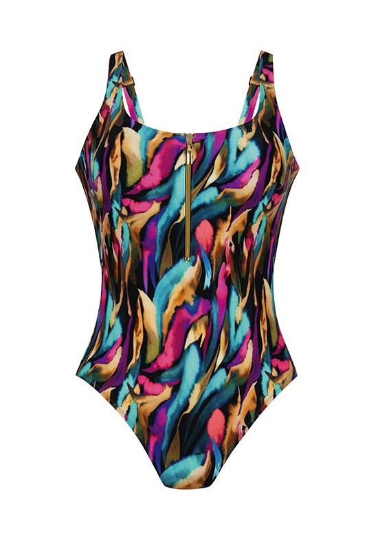 Costume intero con coppe morbide e cerniera funzionale sul davanti offrendo al tempo stesso il massimo comfort. COMP: Tessuto esterno 80% Poliammide 20% Elastan Coppetta 52% Poliuretanica 48% Poliestere Fodera 87% Poliammide 13% Elastan