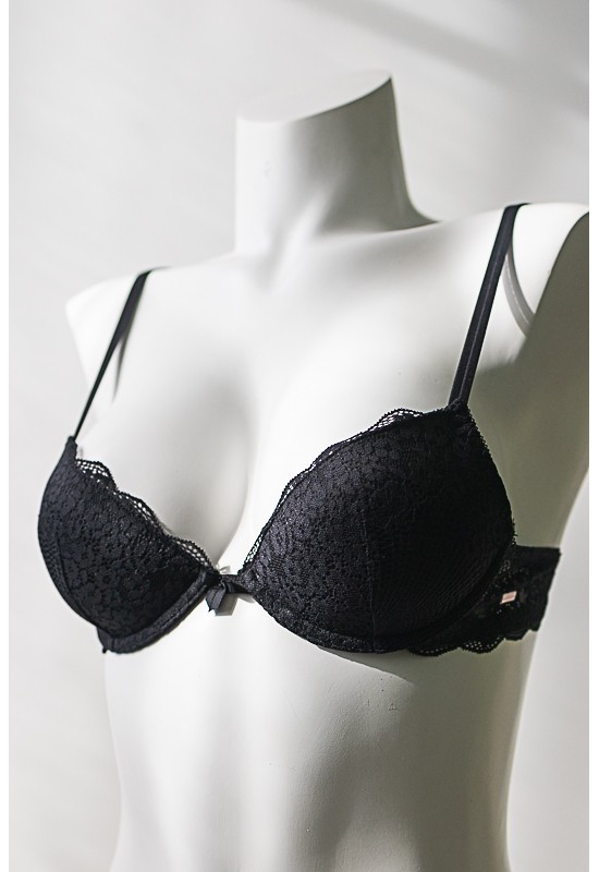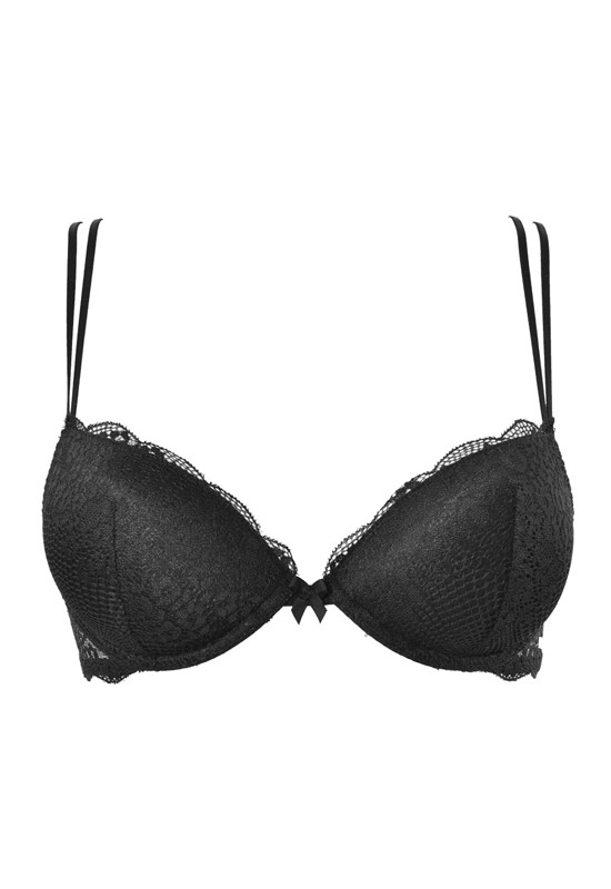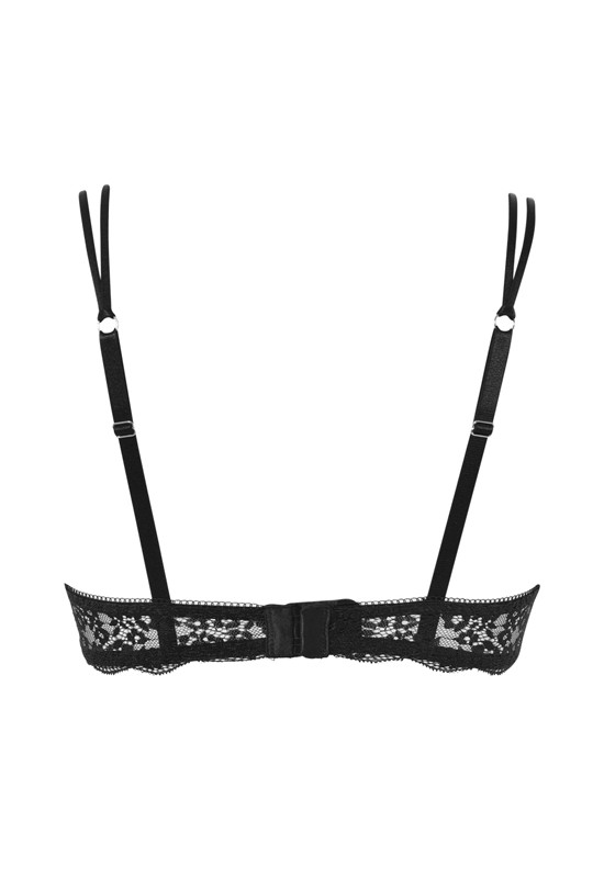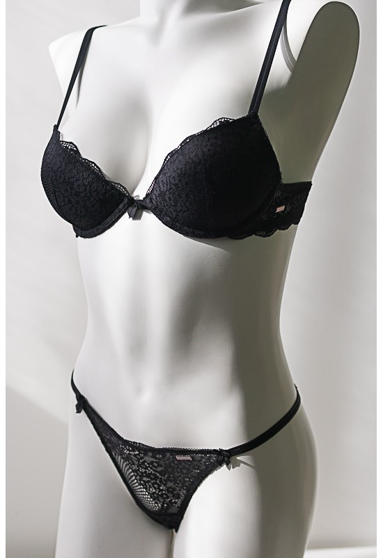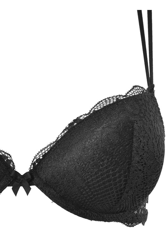 Reggiseno preformato con coppe imbottite e lunette. Bellissimo pizzo fiorito e spalline regolabili che si sdoppiano sul davanti. Allacciatura sul dietro con gancetti. E fiocchino sul davanti. Comp: pizzo: 85% poliammide 15% elastan imbot: 100% poliestere
