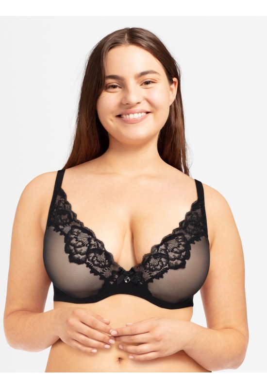 Scollatura profonda molto seducente. La coque nella parte bassa alza e centra elegantemente il seno. Dorsale liscio e lineare per un look moderno. Spalline regolabili su tutta la lunghezza. brassie. Fiocco e sigla Chantelle con medaglietta C" sulla baschina. "