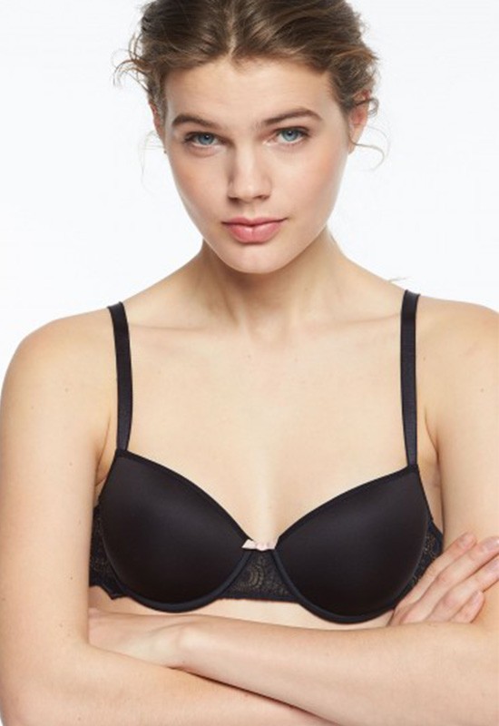 Reggiseno ultraconfortevole che assicura invisibilitsotto gli abiti.Il pizzo sul dorsale e il fiocco tra le coppe rendono adorabile questo reggiseno. Una coque memory ultra confortevole che nasconde i piccoli difetti e dona un effetto arrotondato a tutti i seni. Coppe lisce non ricoperte. Baschina centrale in pizzo grafico e piccolo fiocco a contrasto. Dorsale in pizzo grafico che avvolge delicatamente la pelle. Spalline interamente regolabili.