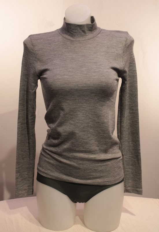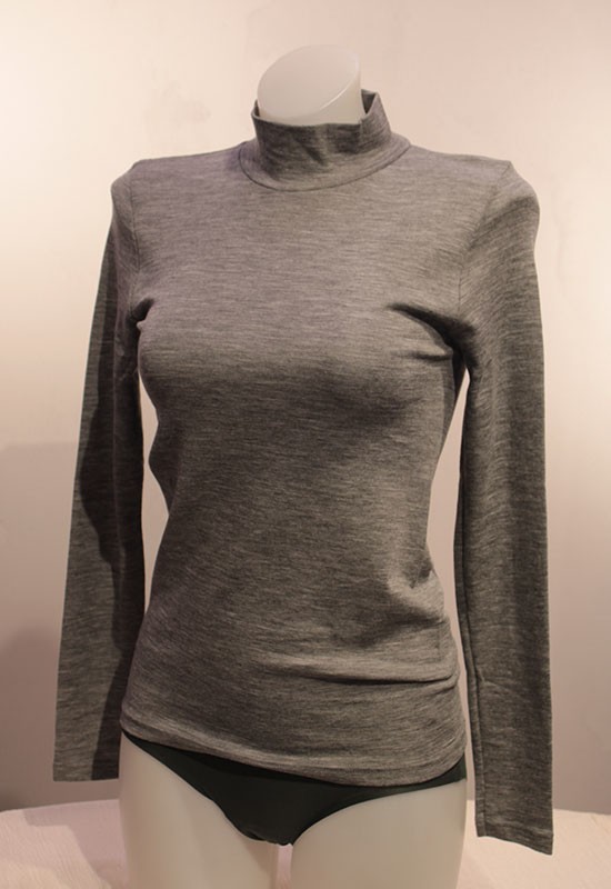 Lupetto donna manica lunga maglia liscia ideale come sottogiacca aderente termoregolatore 85% lana 15% seta made in italy