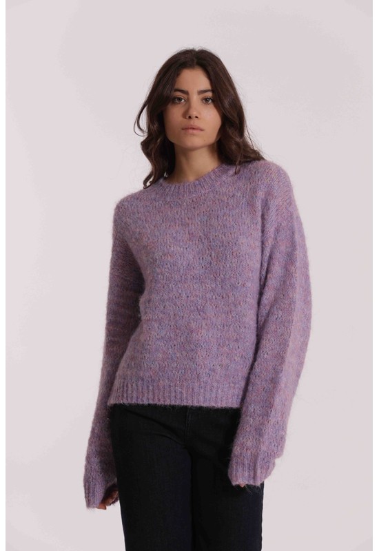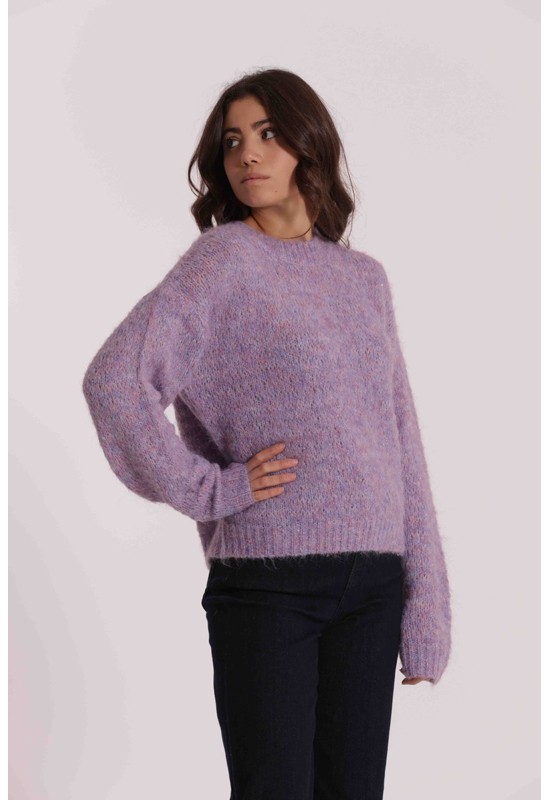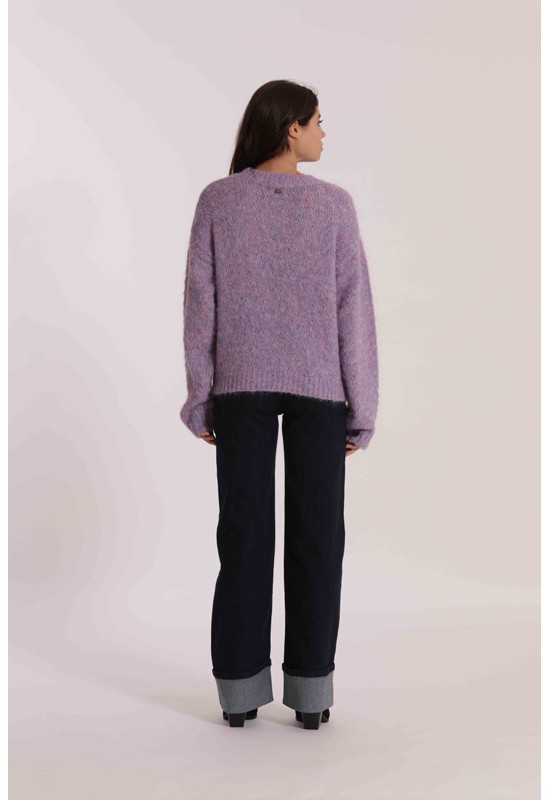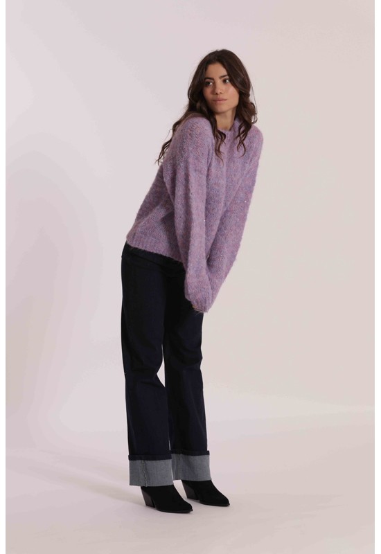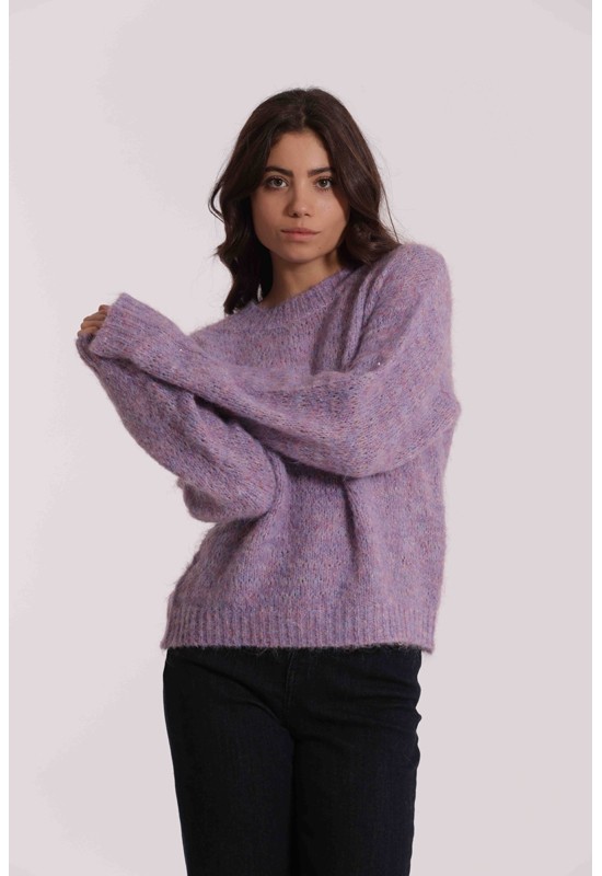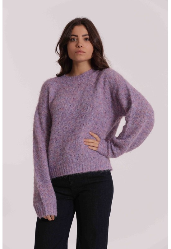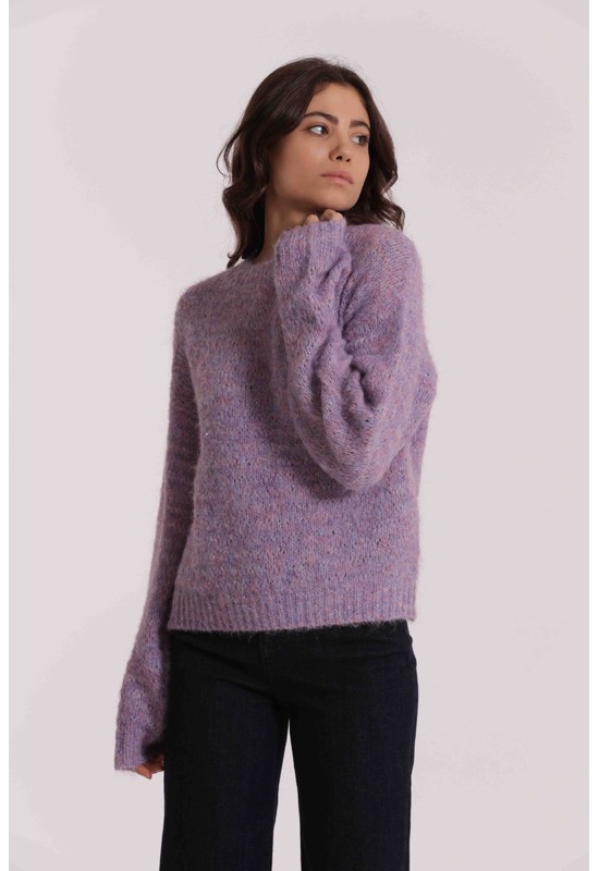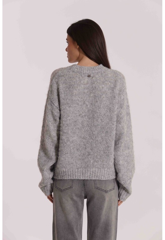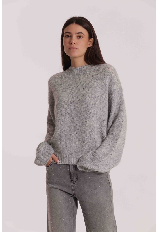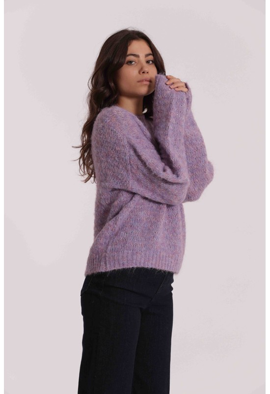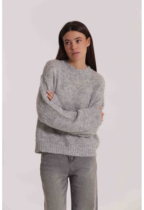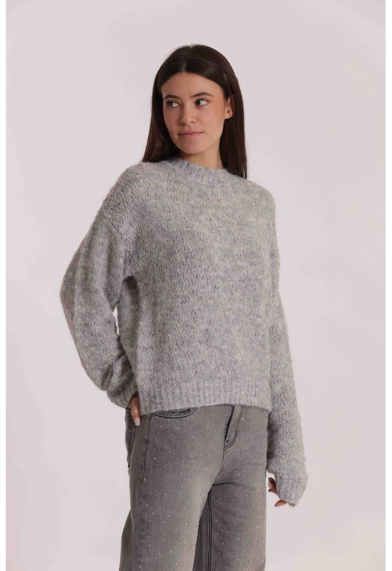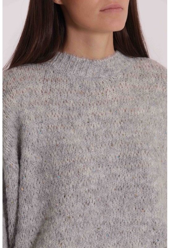 MAGLIA SCOLLO TONDO CON PAILLETTES AFAN-3757 MIMI-MUA'