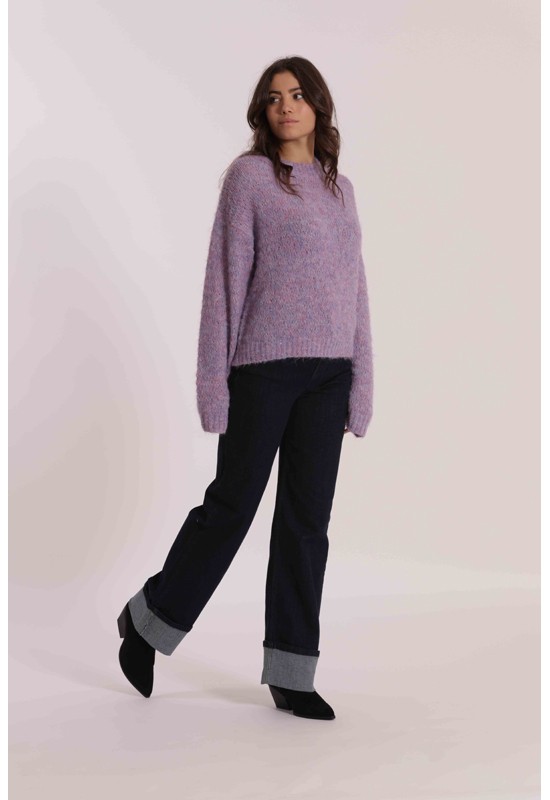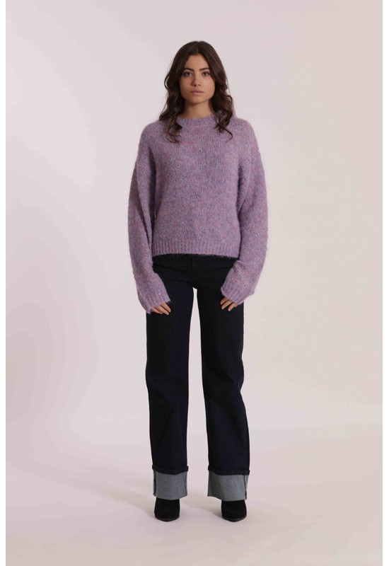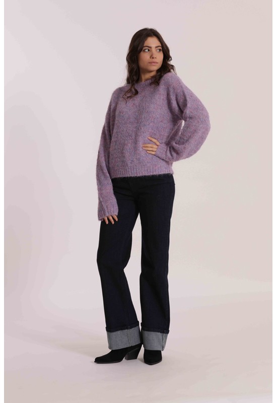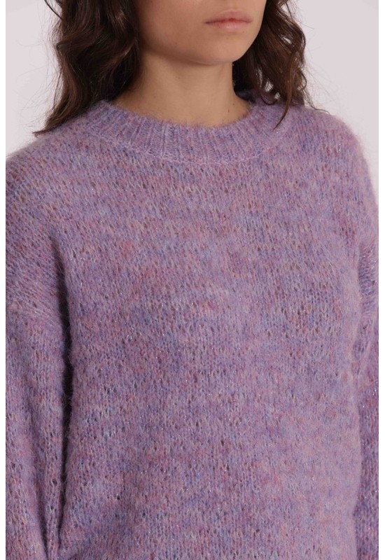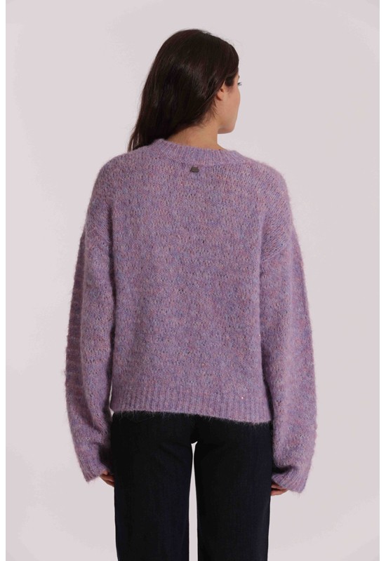 Maglione scolatura rotonda tinta unita. Modello over a maniche lunghe con paillettes multicolor COMPOSIZIONE: 8%WO 56%PC 36%NY