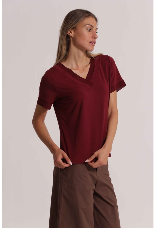 T.SHIRT SCOLLO V DETT.GEORGETTE SFAO-1958 MIMIMU