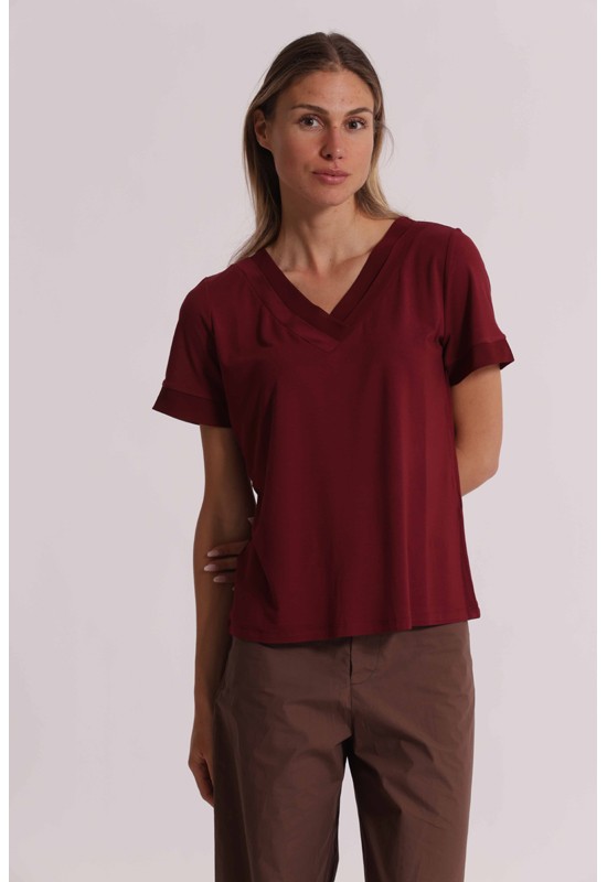 T.SHIRT SCOLLO V DETT.GEORGETTE SFAO-1958 MIMIMUÀ