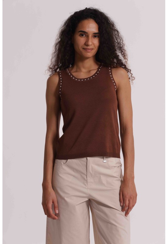 TOP/GILET MAGLIA DETT.TRATTEGGIO MIMIMUÀ AFAO-3794