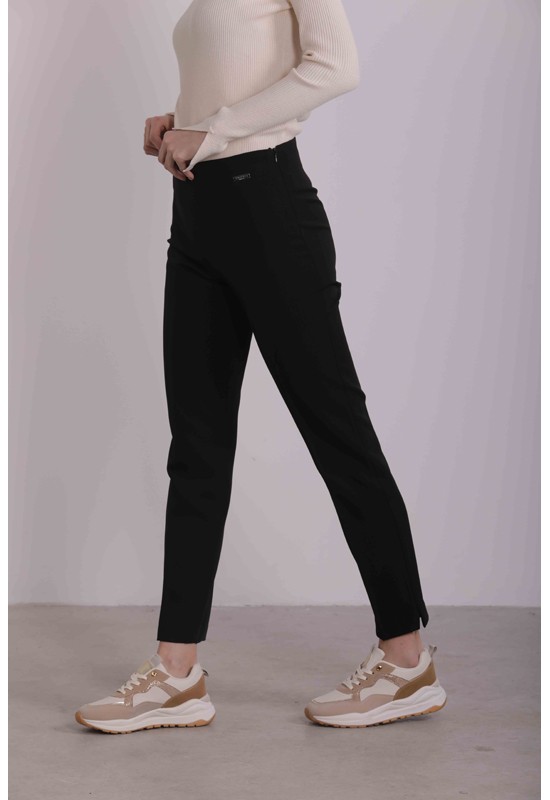 Pantalone gamba dritta con cerniera sul fianco vestibilita' regolare. Composizione 88% PL 12% EA