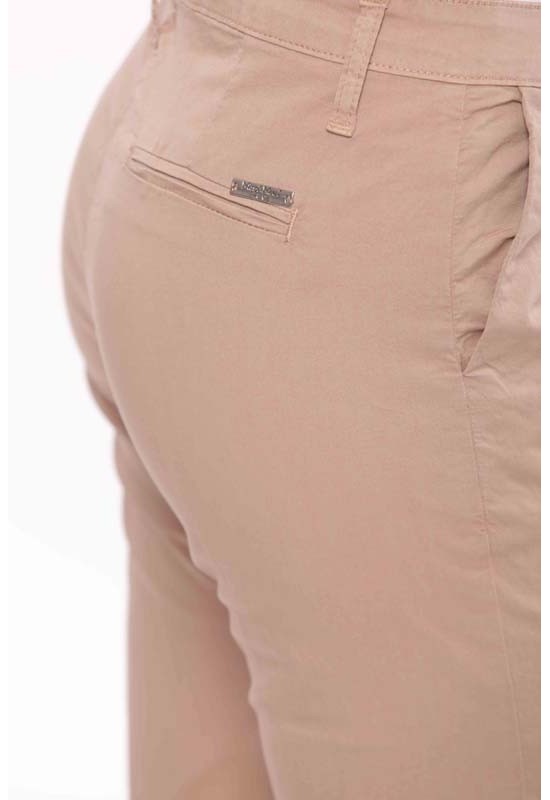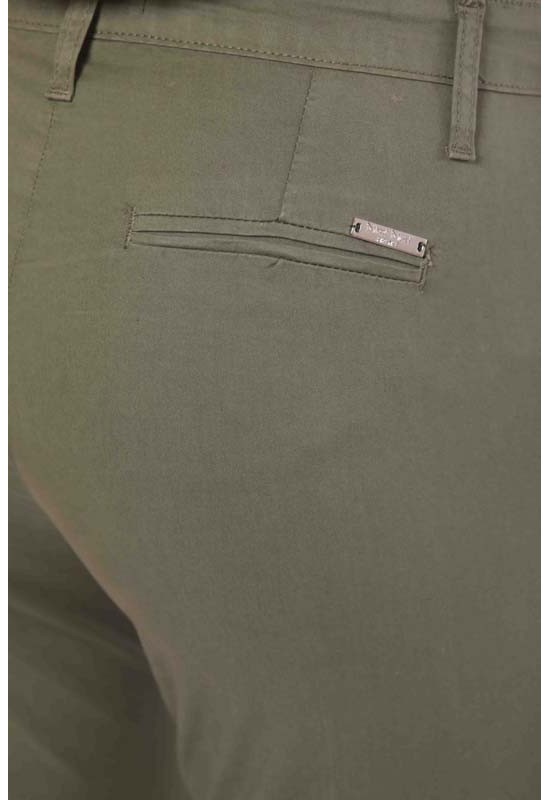 Pantalone leggero a sigaretta in gabardina con bottone e cernira. Tasche sui fianchi e sul retro e piccolo spacchettino . COMP:98%CO 2%EA