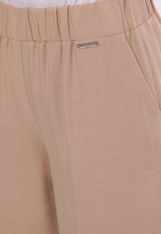 Pantalone palazzo in akumal con dettaglio a righe-cammello. composizione: 90% VI 10% PL