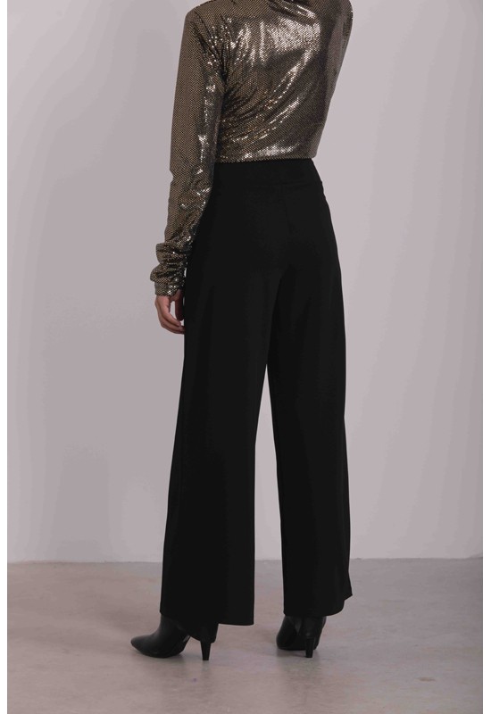 Pantalone a palazzo in crepe elastcizzato bordo alto in vita senza cerniere o bottoni. Tessuto: 95% PL 5% EA